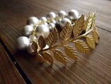 大きなリーフチャームと大きさの異なるコットンパールを組み合わせたブレスレット、再入荷しました。