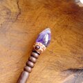 柔らかな光を放つ天然石とウッドスティックを専用の樹脂で接着したオリエンタルなカンザシです。