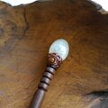 柔らかな光を放つ天然石とウッドスティックを専用の樹脂で接着したオリエンタルなカンザシです。