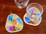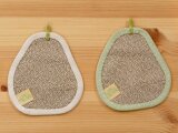 洋なしの形のコースターです。中綿を入れずに薄く仕上げました。