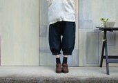 形が可愛いパンツを、リネンコットンで作ってみました。