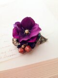 カットが美しいフラワーカボションを配したリース型ブローチと
