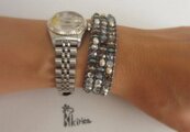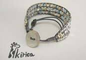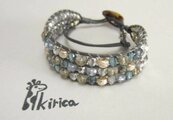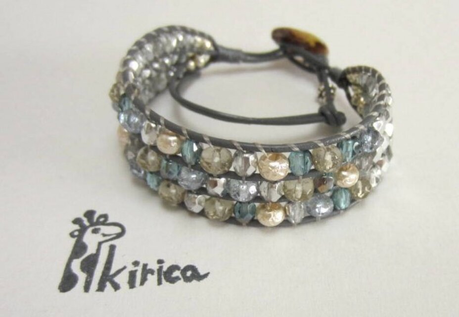 淡いブルーとグレーのビーズを配色して、3段のバングルができました。