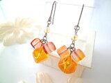 #キューブ #四角ピアス #透明感 #クリア #涼 #オレンジ #橙 #クリアピアス #グラデーション #大人かわいい #チェコ #ビタミンカラー