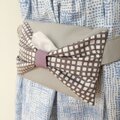 移動ポケットをワンピースに着けられるようにと考えたウエストポーチ(グレイ)です。リボンのところからティッシュが取り出せるようになっています。