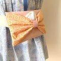 移動ポケットをワンピースに着けられるようにと考えたウエストポーチ(ピンク)です。リボンのところからティッシュが取り出せるようになっています。