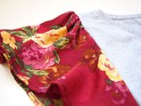 メタンジグレーのTシャツの袖をシルクの花柄ヴィンテージスカーフでバタフライスリーブにつけかえ
