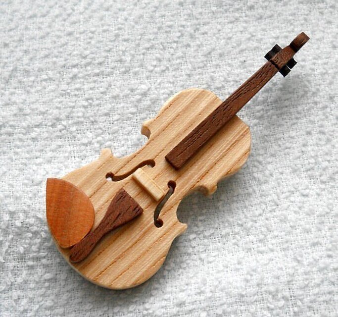 実際にはこの色のバイオリンはありませんが、木で出来たこのブローチは