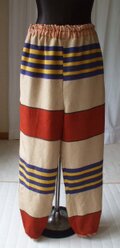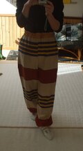 ウエストと裾は木綿の白を柿渋で染めたものを使いました。