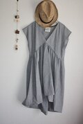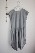ギャザーが入るデザインですが、ストン、と下に落ちるライン、前後ろの長さが違う、可愛らしく、スッキリ着ていただける大人可愛いデザインです。。