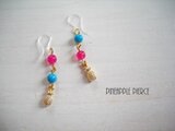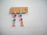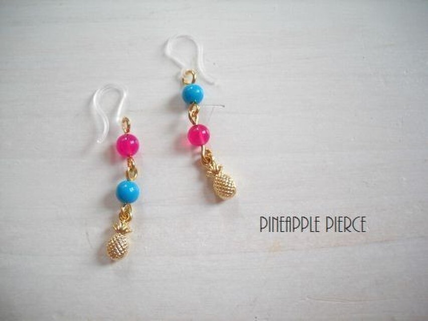 透明感のあるビビッドピンクのストーン×ターコイズ(ハウライト染)×コロンと厚みのあるちいさなパイナップルチャームがキュートなピアスです。