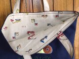 【ウラ生地】丈夫な織り方の綿100%生地にはベージュ系のはたらくくるま柄がプリントされていて、バッグの中身を取り出す瞬間までもが楽しくてうれしいね。