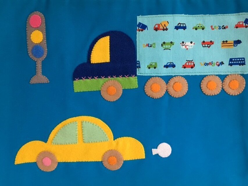 ◆じどうしゃ柄のレッスンバッグはこんなそざいを使っています◆