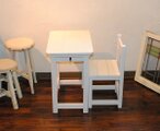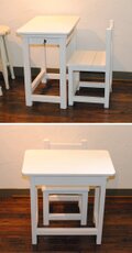 ★白いレトロ机★かわいい昭和レトロの小さな勉強机と椅子★