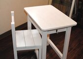 とてもカワイイ小さい木製の、レトロな机と椅子です。