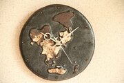 正距方位図法にて、無理やり円形におさめた世界地図。