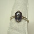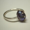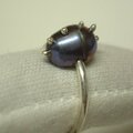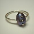 淡水パールを使ったリングです。 デザインは銀の丸線をパールの下側 三分の一に穴を開けて通しているシンプルなデザインです。 パールには銀に粒が6個付いています。この銀の粒によって宇宙っぽく見えたり、生き物に見えたり、不思議な感じに見えるデザインにしています。