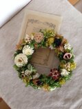 藁縄に柔らかな色合いのプリザーブドフラワーをリボンや飾りと組み合わせたハイセンスなしめ飾りが届きました。妻や娘もとても気に入ってくれました。 もういくつ寝ると・・・とお正月が待ち遠しくなります。 作品の他にThank youコメントのついた可愛らしいフラワーが添えられていたり、手書きのご挨拶が書かれていたりして、作品同様、作者様の温かい思いを感じる体験でした。ありがとうございました。