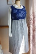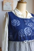 薔薇の久留米絣と霜降りリネンでワンピースを作りました。