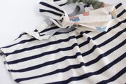 春秋向けのデザインが夏の今でも、これからの秋でも着られるアイテムです。肩はスナップボタン(1つ)で着脱しやすい形になっています。