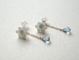 シェルフラワーとロンドンブルートパーズのチャームピアス