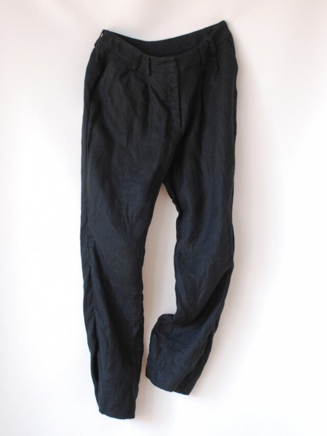 良質な国産リネン(ブラック)でテーパードパンツをお作りします。
