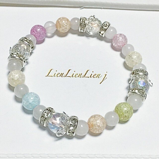 送料無料★開運☆厄除★パステルカラーの水晶ブすレスレット★天然石
