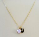 黒ネコチャームと直径8㎜のスワロフスキー(カラー:ローズウォーターオパール)を組み合わせたペンダントです。