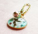 直径2.5㎝のミール皿にハーレクイン柄のシートを敷き、天使のチャームとラメの星をレジンで閉じ込めました。