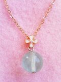 直径10㎜の天然石・フローライトと白い花形のメタルパーツを組み合わせたペンダントです。