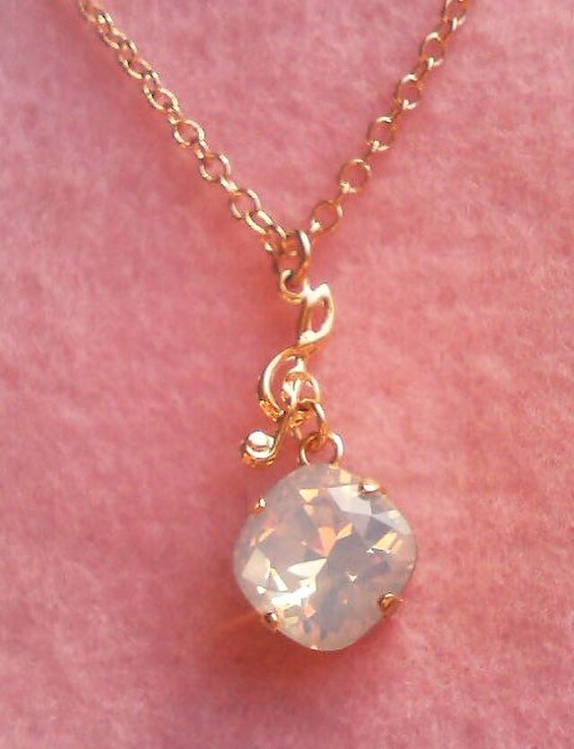 10㎜のホワイトオパール色のスワロフスキーと、ト音記号のチャームを合わせたペンダントです。