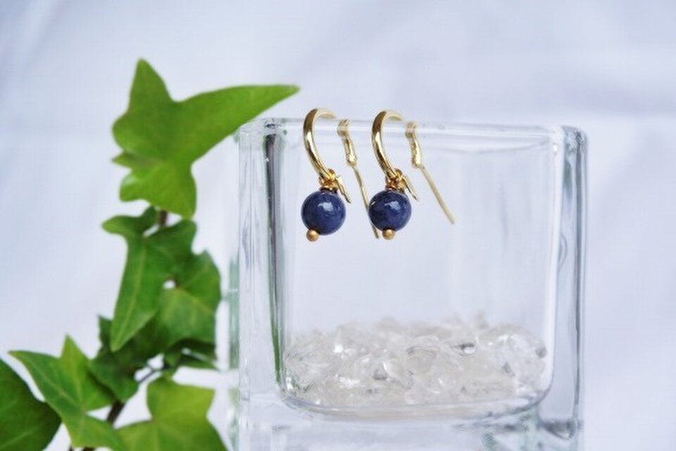 信頼と誠実の石と言われるサファイヤのピアスです