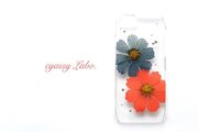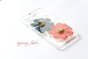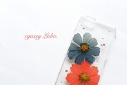 深緋と褐返の秋桜(コスモス)押し花スマートフォンケース