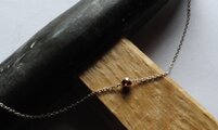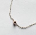 シルバーのチェーンにk10製のミラーボールが一粒付いていて、t−シャツなどラフな格好に合わせやすいデザインのネックレスです。