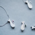 寛いでいる猫の姿をモチーフにしたネックレス。