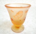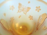 薄いオレンジ色のグラスに蝶々と桜をあしらいました。