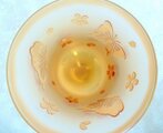 小振りですがプレートも付いて、アンバー(琥珀色)をベースにオレンジ色の被せと本格志向の可愛いグラスです。