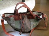 イタリア軍のヴィンテージブランケットにハリスツイードと合わせて4枚はぎでつくった