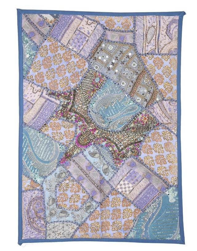 ビーズ刺繍タペストリー・ブルー小エスニック生地素材にも