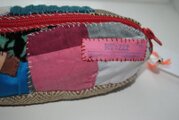 いろいろな種類の布を使用してパッチワークしながら仕上げました。