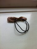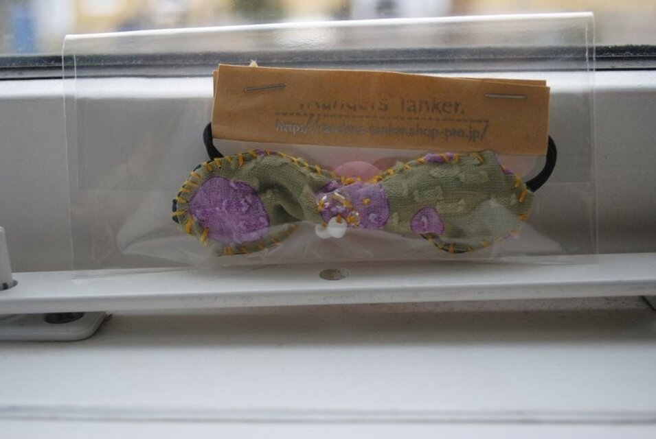 淡い色の生地にビーズを少しあしらって一つだけのヘアゴムを作りました。