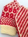 手首より上の模様部分は2色の編み込みですので、厚みも2倍になり、より暖かく、丈夫になっています。