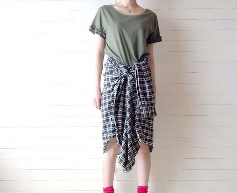 スカート部分のシャツ袖は前で結ぶとお腹周りも気にせず着こなせて