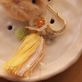 【再販】和のふんわりブローチ*黄色の簪うさぎ茶色