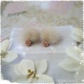 優しい色合いのラビットファーピアス ホムポム