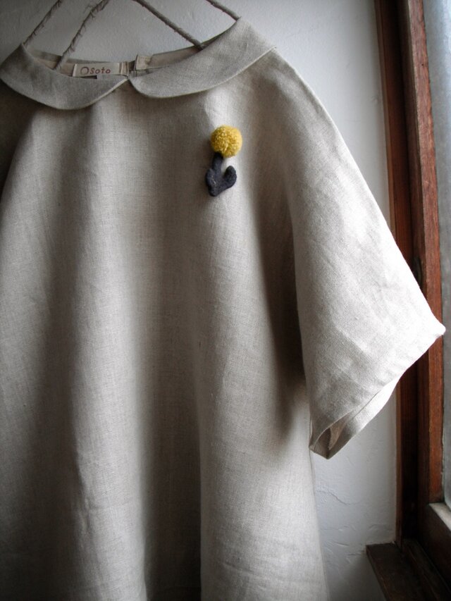 リネンの少ししゃきっとする質感と丸襟の柔らかなデザインが相まった