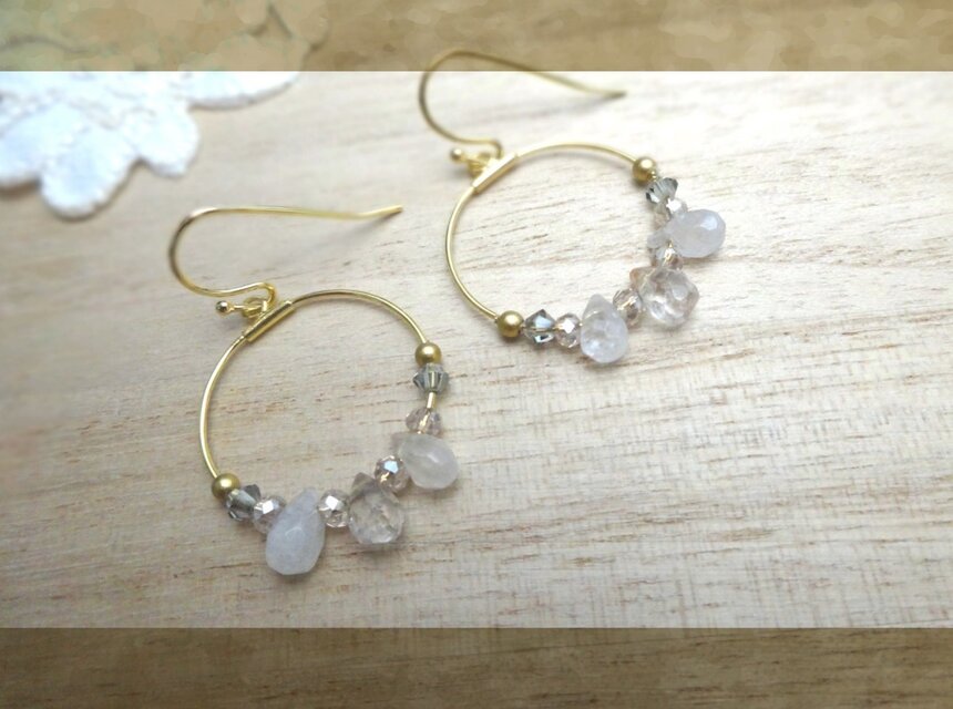 しずく型が可愛いルチルクォーツのフープピアス。