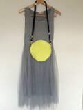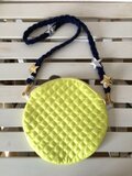 まんまるのカナリアイエローのキルティングと、紐にあしらった星モチーフが推しポイントです!