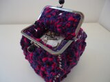 さいころのように、二ットのモチーフをつなげてがま口をつけました。
