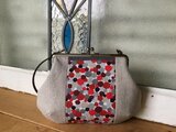 多色使いの水玉模様にリネン生地を合わせ落ち着いた雰囲気にしました。